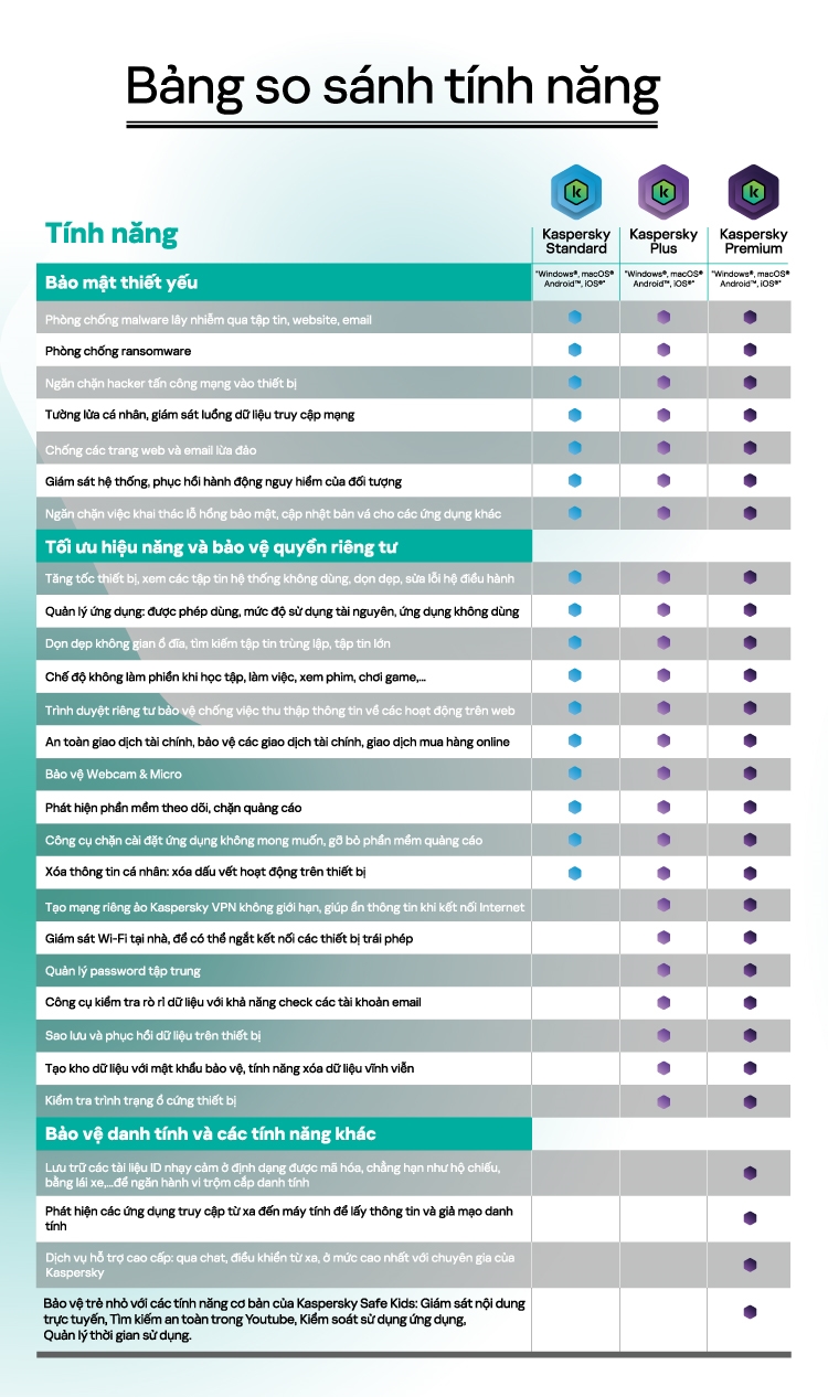Mô tả: Kaspersky Plus là giải pháp an ninh mạng thế hệ mới bảo vệ bạn khỏi virus, mã độc tống tiền và phần mềm độc hại mới mà không làm chậm thiết bị, bao gồm bảo vệ thanh toán, trình quản lý mật khẩu và VPN không giới hạn để giữ cho cuộc sống số của bạn được riêng tư và an toàn. Tương thích với: Windows®, macOS®, Android™, iOS®